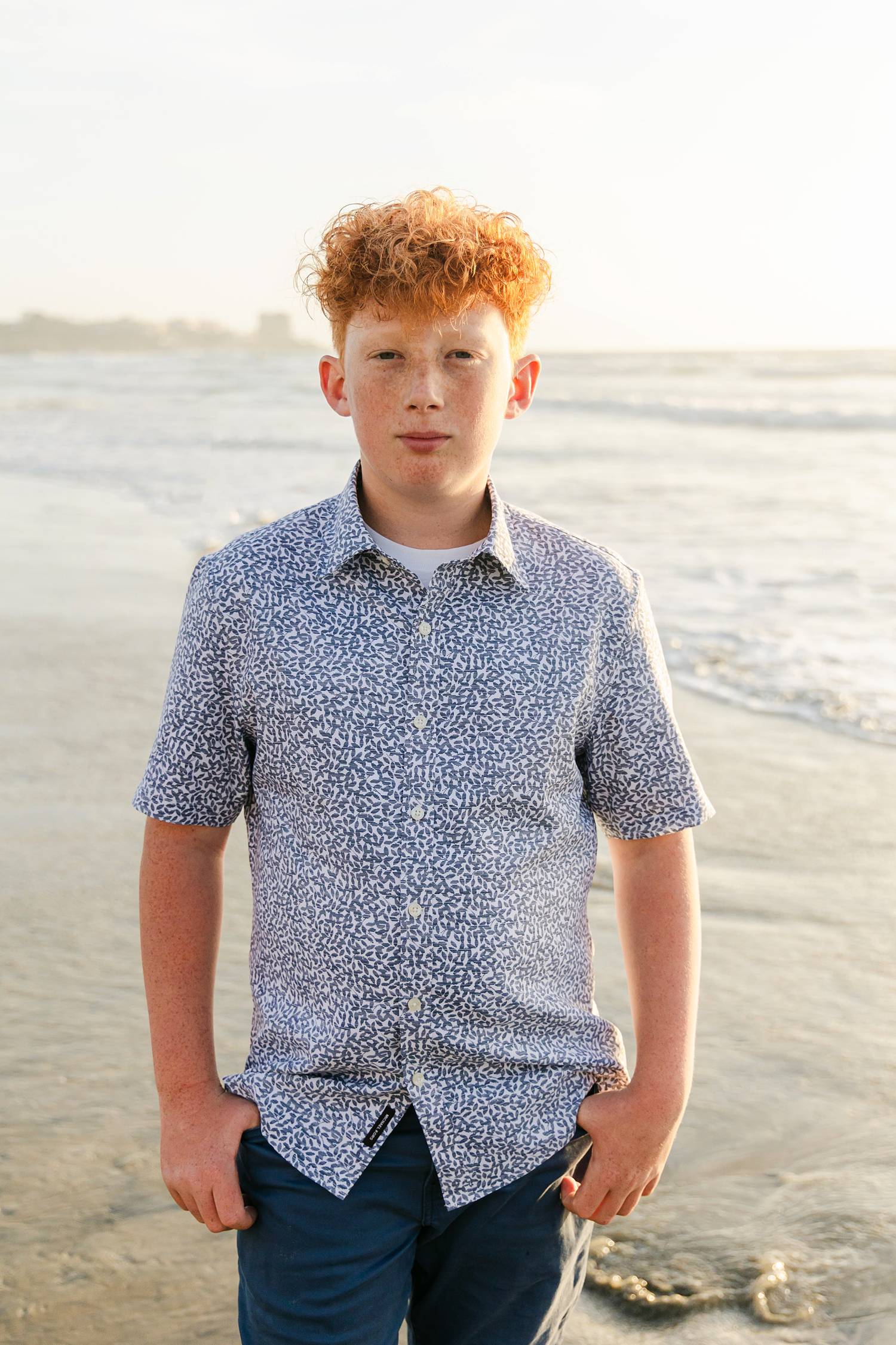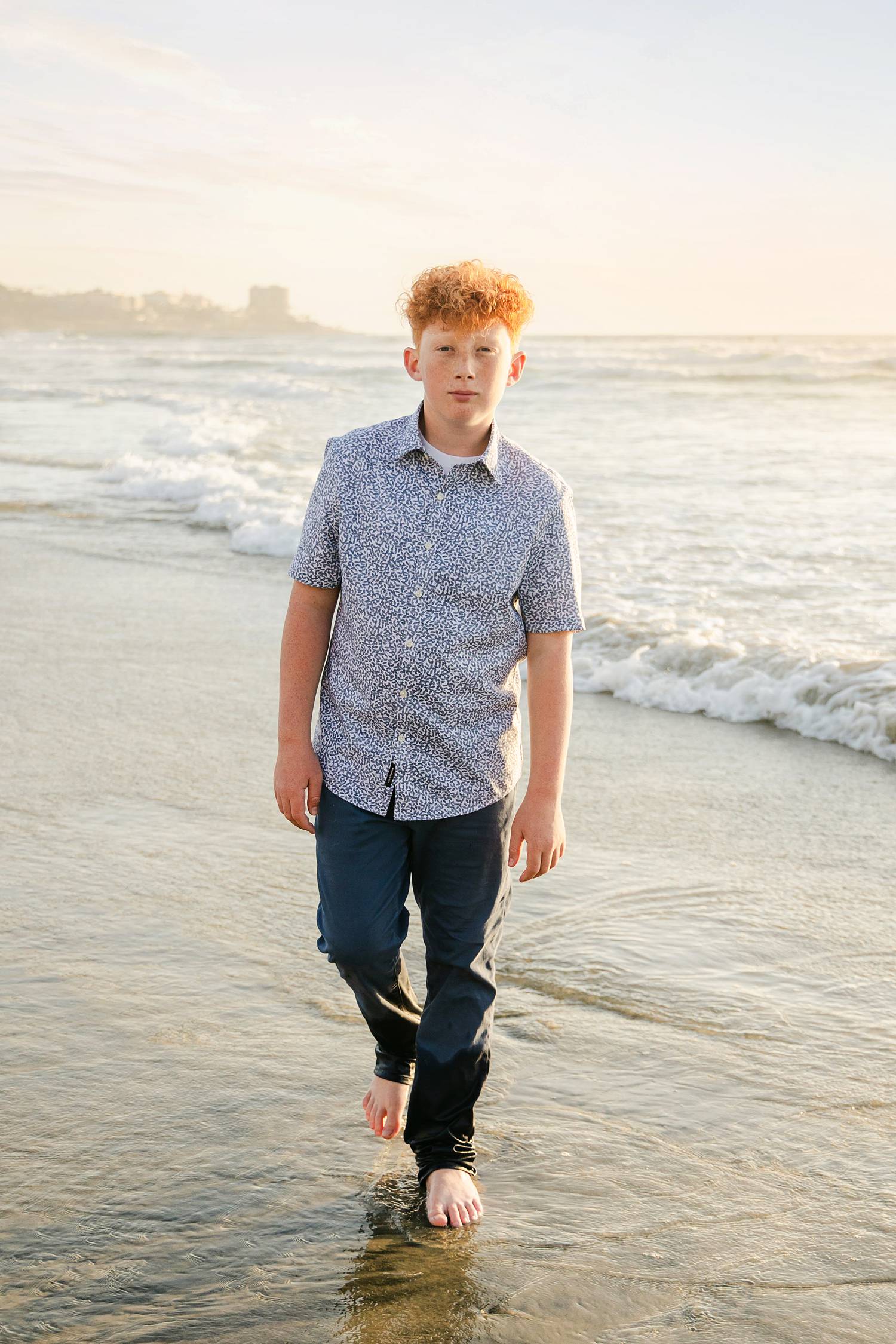 We met at the beach during golden hour, when the light turns soft and warm and everything feels a little more magical. With two teenagers, we leaned into movement and fun—running through the water, splashing in the waves, and letting moments unfold naturally. These action-packed images always become favorites, especially at the beach.