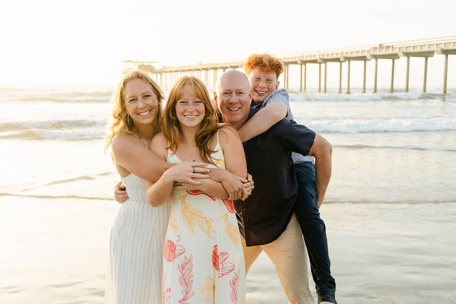 The sunset at Scripps Pier was dreamy that evening, with golden light reflecting off the sand and the pier stretching into the background. But what made this session truly special was the connection this family shared. There was so much ease, love, and presence between them—it’s the kind of session that stays with you.