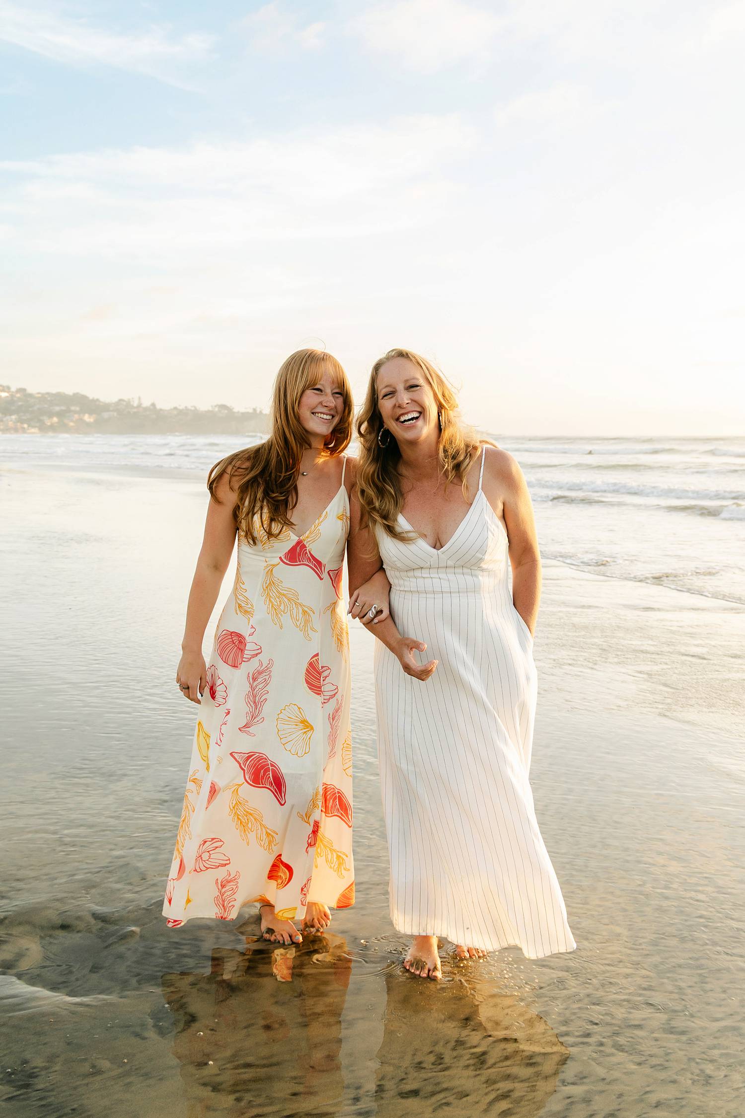 As the sun began to set, the session slowed down, creating space for quieter moments. One of my favorite parts of the evening was capturing the connection between mother and daughter—walking arm in arm along the shoreline, laughing, just being together. Those moments felt especially meaningful knowing how quickly this stage of life passes.